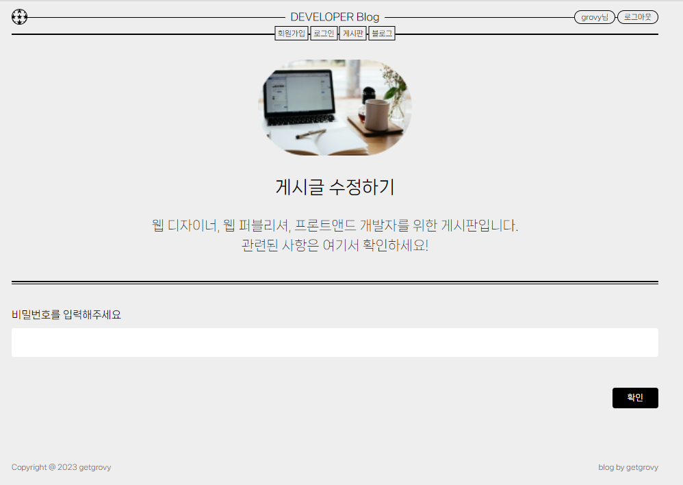 아닐경우 글쓴이의 비밀번호를 입력받아 글을 수정 하게 만들었어요