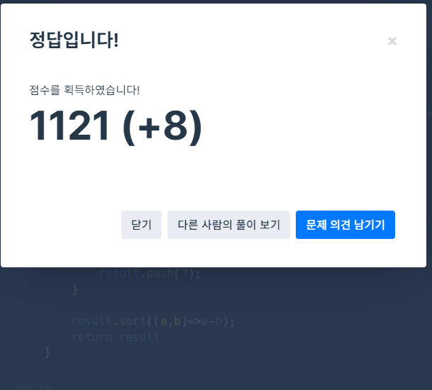 result.push 부분에 1 ,2 ,3 숫자형식으로 푸쉬해야 .. 체점이 됩니다.