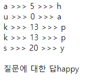 문자열 s와 skip, 그리고 자연수 index가 주어질 때, 다음 규칙에 따라 문자열을 만들려 합니다. 암호의 규칙은 다음과 같습니다.