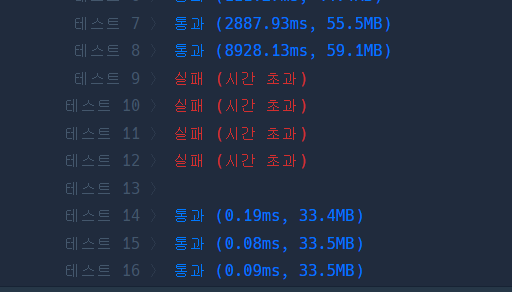 테스트케이스에서.. 시간초과가 떠서 실패한뒤 다시 코드를 수정했어요