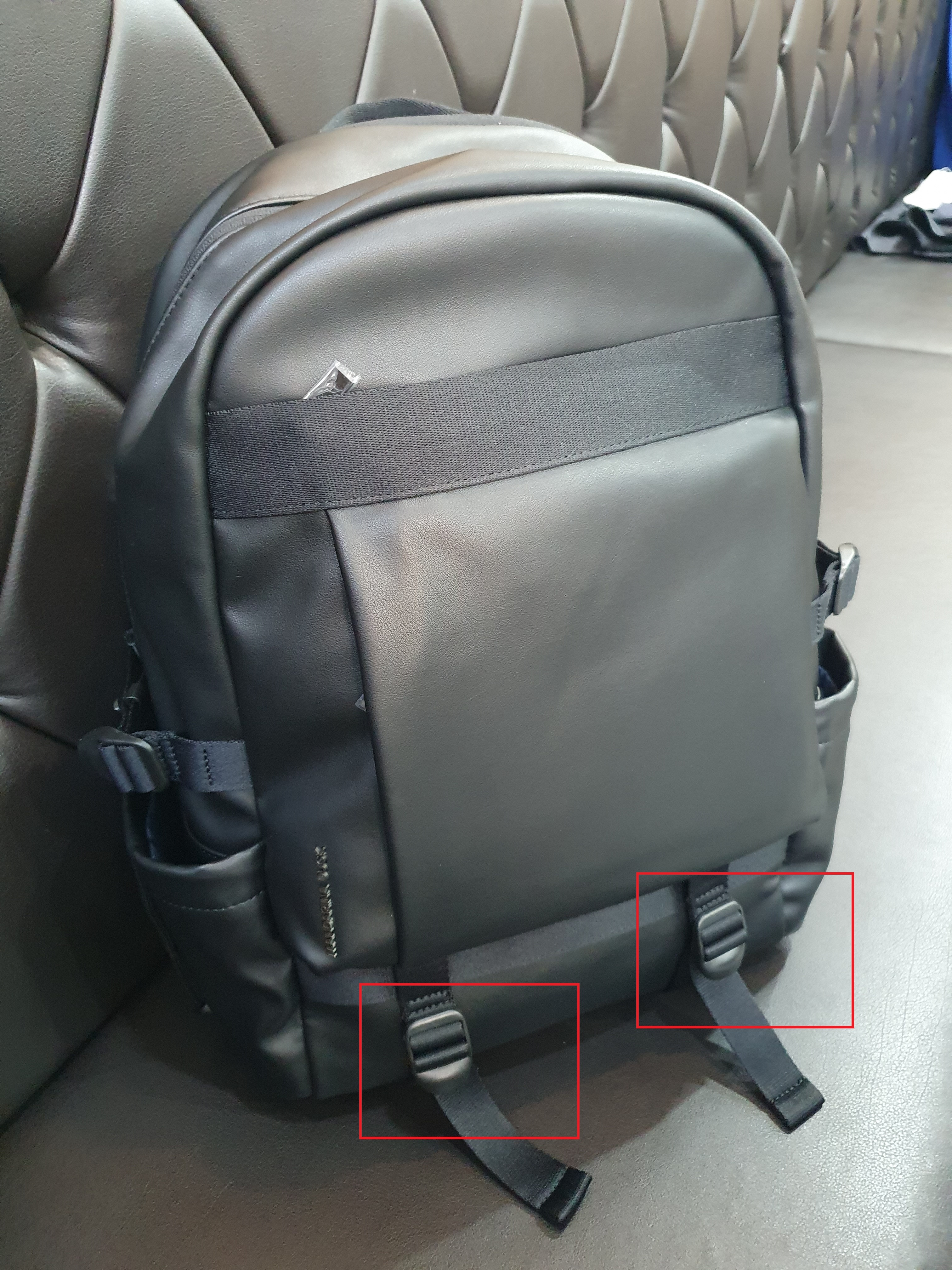 위 사진의 빨간색 부분으로 가방 밑부분을 고정시킬수 있어
